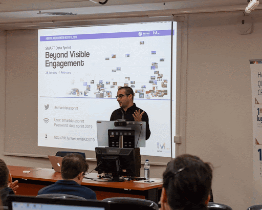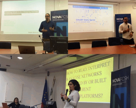 “The idea of the SMART group first appear in early 2016 in the shape of a one-year research project, and during the Data Laboratory sessions of the Digital Media UT Austin / Portugal doctoral program, at NOVA FCSH – Universidade Nova de Lisboa. The research project was conceptualised by Janna Joceli Omena and entitled “SOCIAL MEDIA PLATFORMS IN PRACTICAL RESEARCH: Designing Data-Driven Techniques with Digital Methods”. Professor António Granado was heading the sessions and mentoring the projects proposals. He came up with the suggestion of using the tool acronym creator because “projects have an acronym”, he said. Relying on the project title, different keywords combination were applied, and among all ordinary, weird, comic or odd options, the chosen one was SMART – short for social media research techniques. “It sounds good!”, that is what they said to each other. After that, and meanwhile the project was taking form, professor Paulo Nuno Vicente (the then newly appointed coordinator of iNOVA Media Lab) invited Janna Joceli Omena for an informal meeting. It did not take too long to put two and two together. On 6 October 2016, SMART was officially presented at iNOVA Media Lab ). Under the leadership of Omena, the group implemented the SMART Data Sprint in January 2017, the first of many to come.”