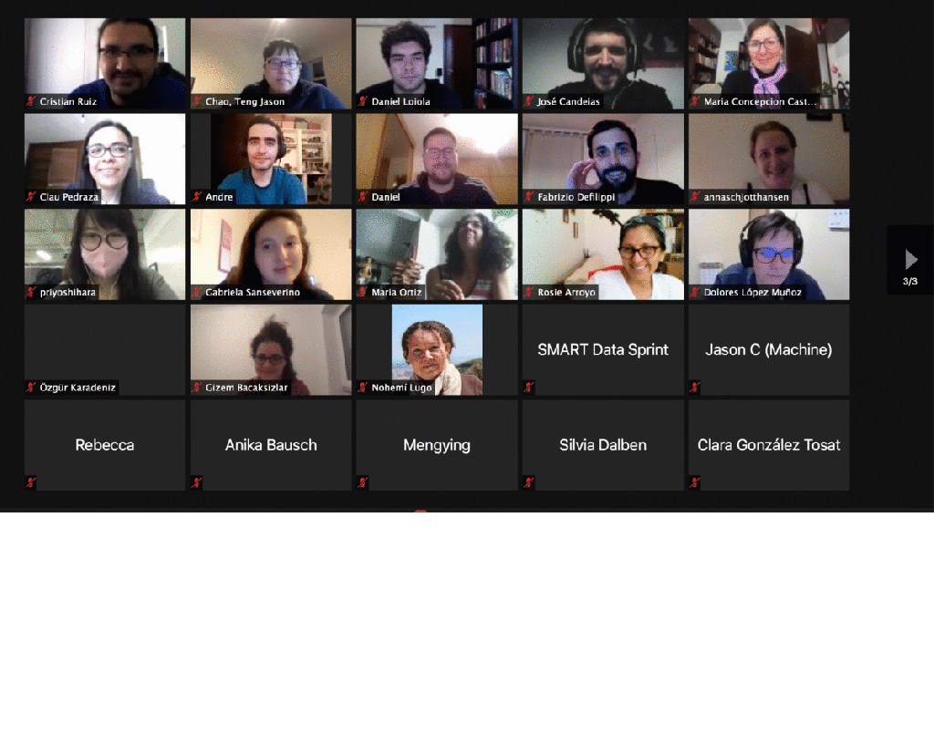 Now let’s go back to the importance of numbers and why the quantity of people matter. It is not only for fulfilling the financial need or generating funds to make the machine work but also because the #SMARTDataSprint is really something about creating and establishing a community in which we are able to talk the same language, experimenting and trying things out without fear to make mistakes. It is about providing a collaborative environment, reuniting scholars with different expertise and career levels, but willing to contribute and collaborate equally. It is about giving space for students who cannot afford the fee but want to participate. And before you think that these ideas or proposals sound too perfect, I can tell you in advance; no, they are not!! Lots of work, lots of meetings, lots of giving, countless difficulties and hierarchical barriers offered for free by the sweet academic environment. Well, I don’t want to go there, because it is time to celebrate the five years of the #SMARTDataSprint 🥳 🤩 🤓 So, how about moving to edition number 4? From then on, you will find only a summary of the other editions, more thoughts at the end.