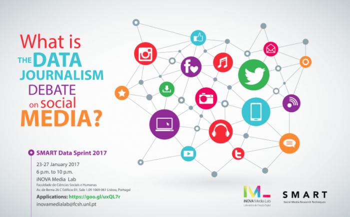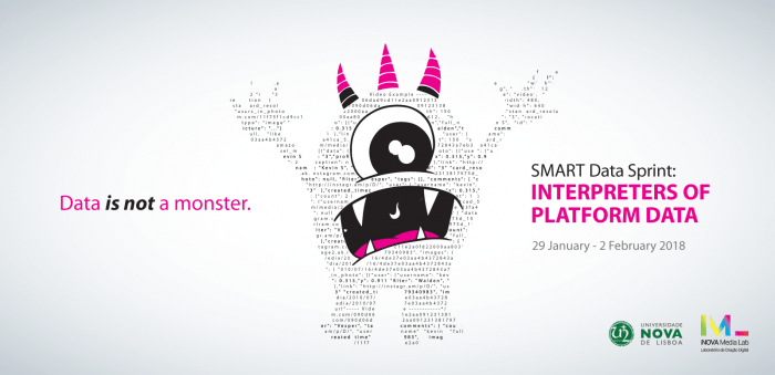 The idea of the SMART Data Sprint came from my experience at the Digital Methods Winter School (in 2014) and Summer School (in 2015) but also from my lack of money to travel to Amsterdam, in 2016, and the creation of iNOVA Media Lab in the same year. Back then, I had applied to four different PhD scholarships (two in Brazil and two in Portugal) without success. There was not enough to pay the PhD programme fee (so I was in debt). Another important aspect is that since my Master’s course (2013-2015) I was looking for a place for exchanging ideas, a research group or people with similar research interests. There were several groups! But only on paper, or better saying on the faculty’s webpage. It is true that lack of resources can lead to dissatisfaction and complaints, but it can also trigger innovation and action. So, the possibility of doing whatever I wanted to at the new digital media laboratory of NOVA FCSH (iNOVA Media Lab), sounds like heaven. If a chance was given to me, I would take it and make the best of it. That was the spirit!